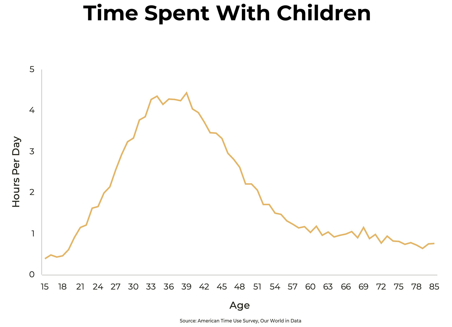 Spending time with kids is one of the best examples that can help one understand what I am talking about. The graph below is self-explanatory. Between your late 20s to early 40’s is where you will spend the maximum amount of time. After this, your kids will not have time for you. This is one opportunity that can never be earned back.