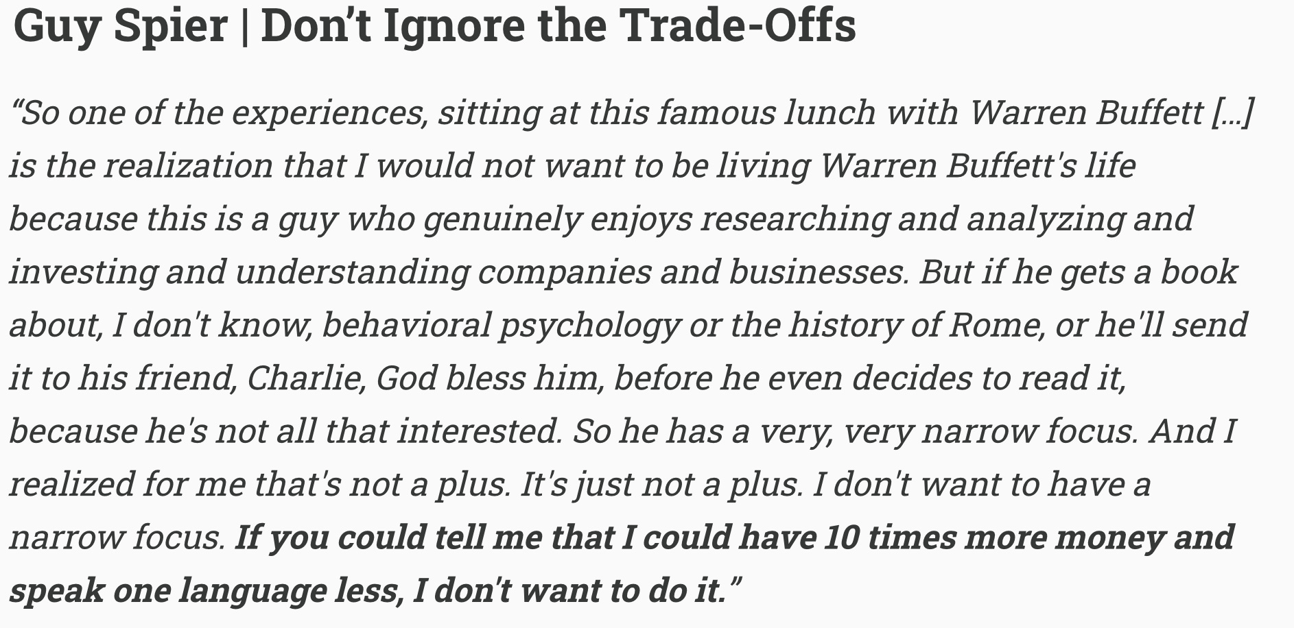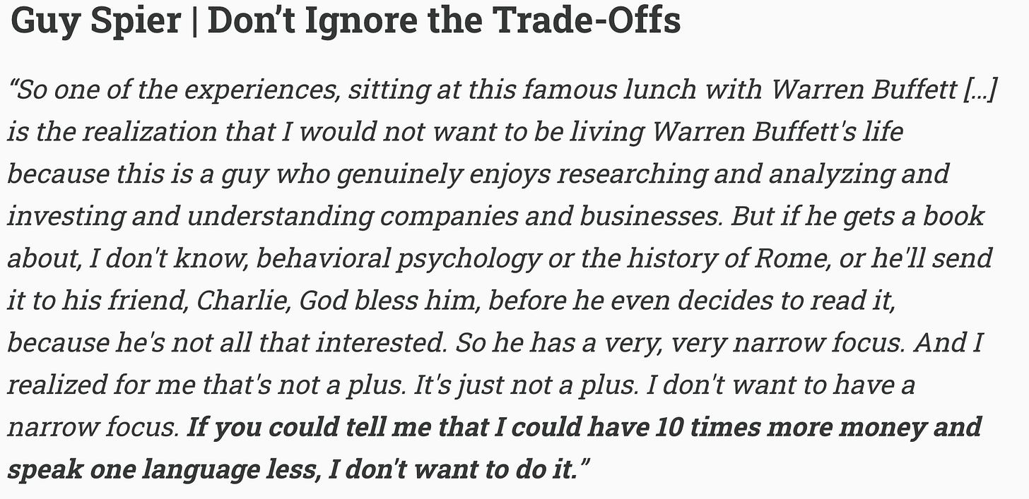 Trade-offs are definitely required but you need to find the fine line where you stop trading the essentials. Money is infinite, time is finite. In fact, my biggest realisation over the past few years is that with a few iterations, we can learn how to make money and can keep the tap going for as long as you want.